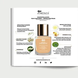 کرم پودر مستر بالانس آرتیستا رطوبت رسانی مداوم در تمام روز را فراهم می کند و ظاهر منافذ، خطوط و چین و چروک ها را کنترل می کند. این کرم پودر با ترکیبی از ضد آفتابها از پوست در مقابل اشعه های مضر UVA و UVB محافظت کرده و از پیری یا تغییر رنگ پوست که از قرار گرفتن در معرض اشعه ماوراء بنفش ایجاد می شود، جلوگیری می کند. از آنجایی که این محصول چربی پوست را کنترل می کند آنرا جهت انواع پوستهای خشک، نیمه خشک تا نرمال مناسب ساخته.